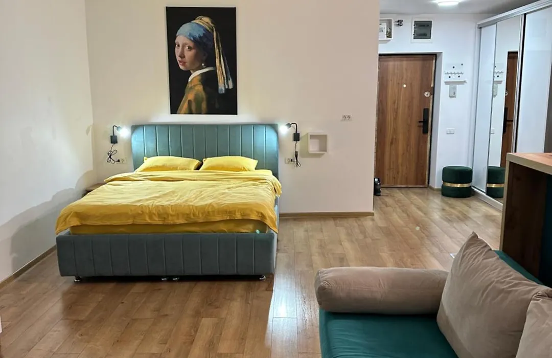 The 40 m² Perla Studio Bucharest Mall apartment is approximately 10 minutes by car from the neoclassical Romanian Athenaeum Concert Hall.